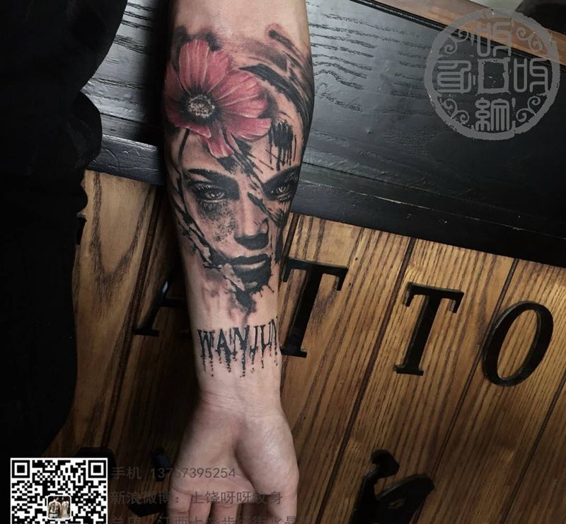 当前位置: 首页 >江西省上饶市纹身店-呀呀刺青纹身图案>欧美罂粟泼墨纹身图片_成品手臂欧美国画人物植物纹身图案