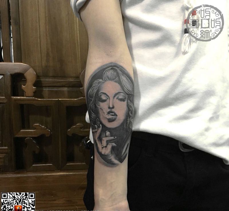 梦露纹身图片_肖像欧美成品手臂手部人物纹身图案