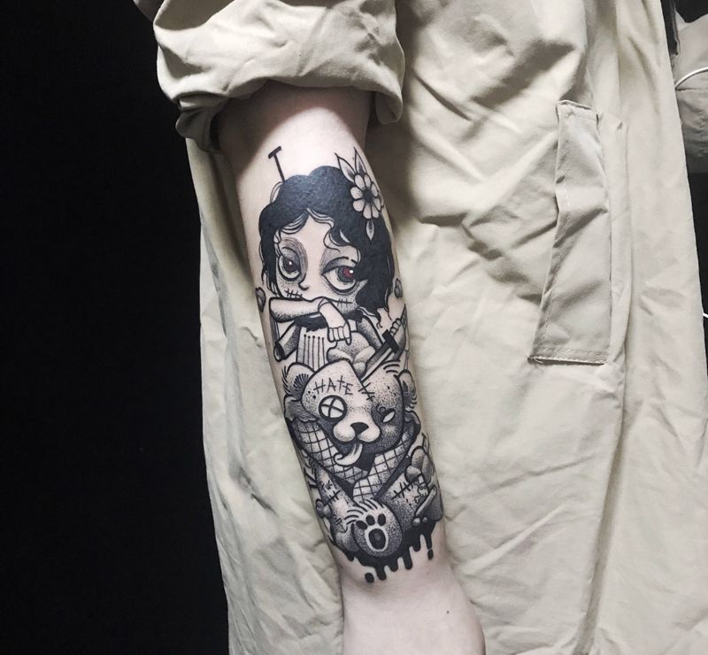 暗黑系点刺 by-小哥纹身图片_手臂点刺纹身图案