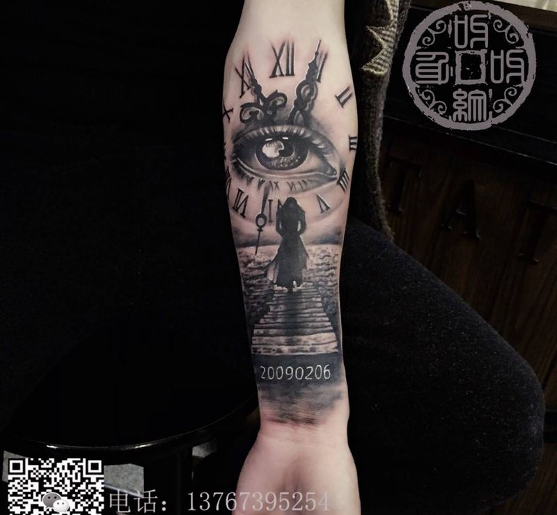 远方的她纹身图片_成品手臂欧美人物纹身图案