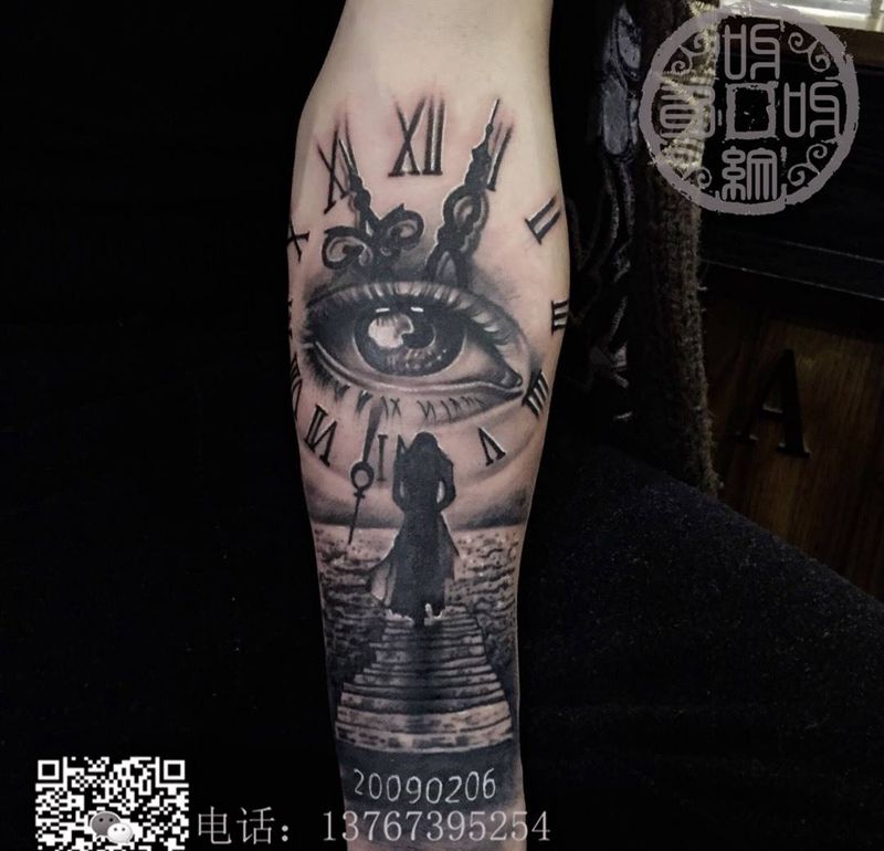 远方的她纹身图片_成品手臂欧美人物纹身图案