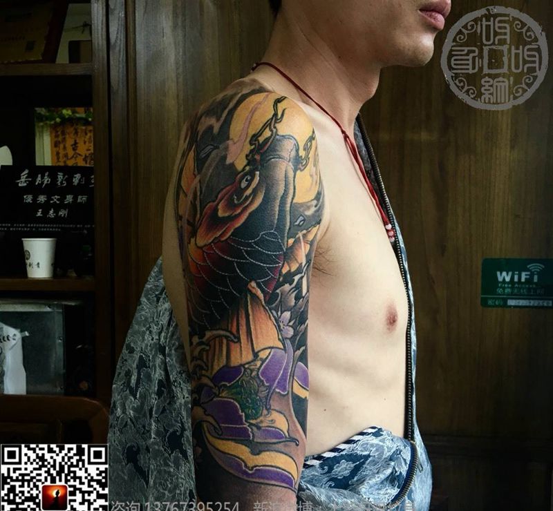 彩色鲤鱼纹身图片_成品手臂手部肩部传统国画习俗动物植物呀呀刺青纹身图案