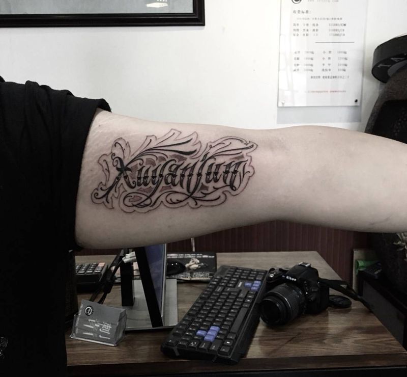当前位置: 首页 >江西省上饶市纹身店-呀呀刺青纹身图案>花体字纹身图片_手部手臂欧美传统清新几何字符图腾呀呀刺青纹身图案