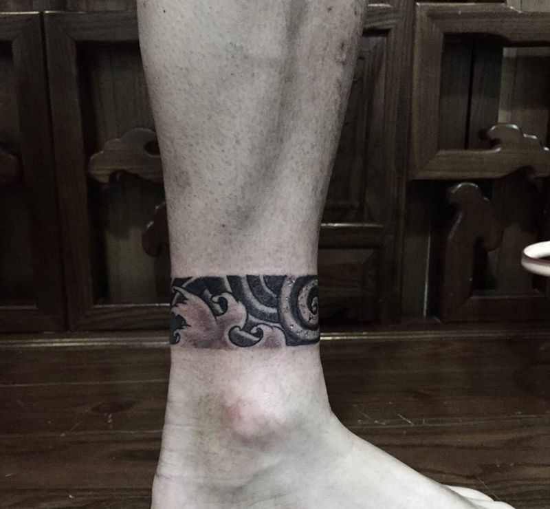 浪花脚环纹身图片_成品腿部脚部传统动物呀呀刺青纹身图案