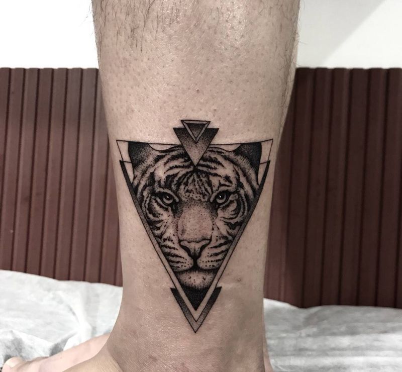 点刺虎头纹身图片_成品腿部脚部欧美传统写实肖像动物鬼神呀呀刺青纹身图案