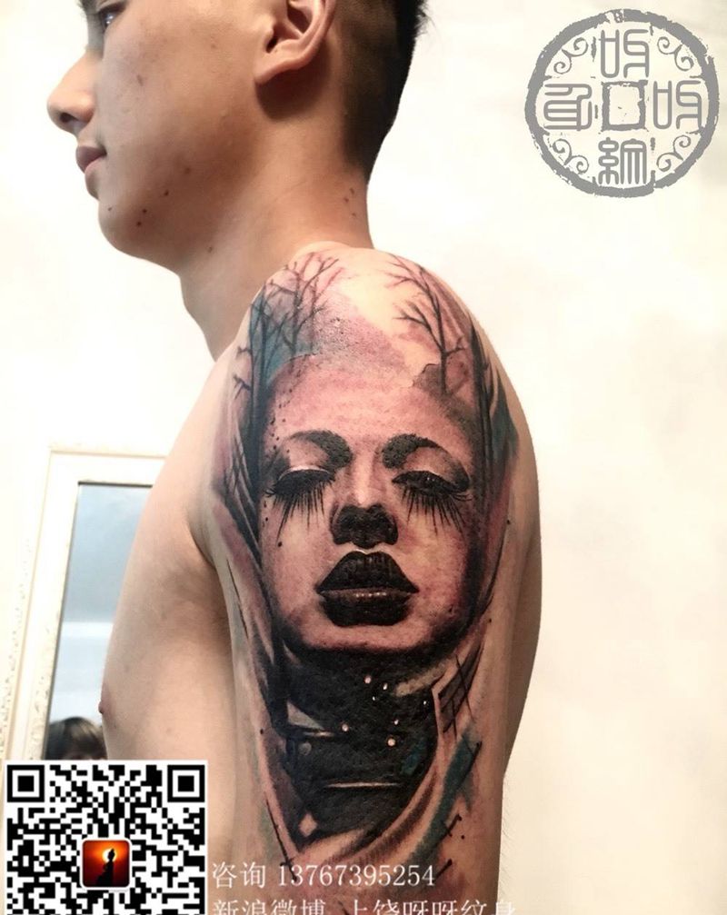 当前位置: 首页 >江西省上饶市纹身店-呀呀刺青纹身图案>欧美肖像纹身图片_成品手臂手部欧美肖像人物植物呀呀刺青纹身图案