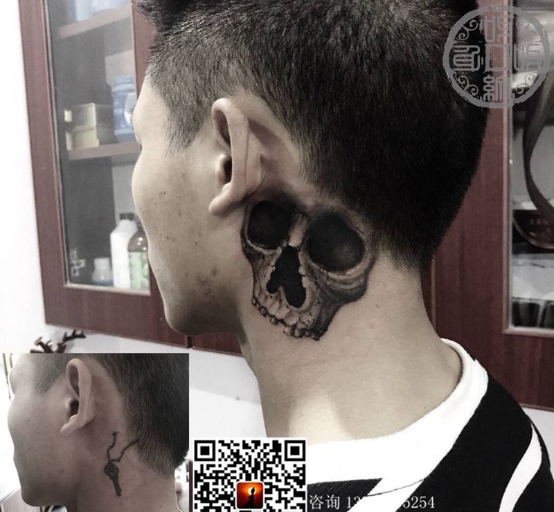 当前位置: 首页 >江西省上饶市纹身店-呀呀刺青纹身图案>骷髅遮盖纹身图片_成品颈部欧美肖像传统鬼神呀呀刺青纹身图案