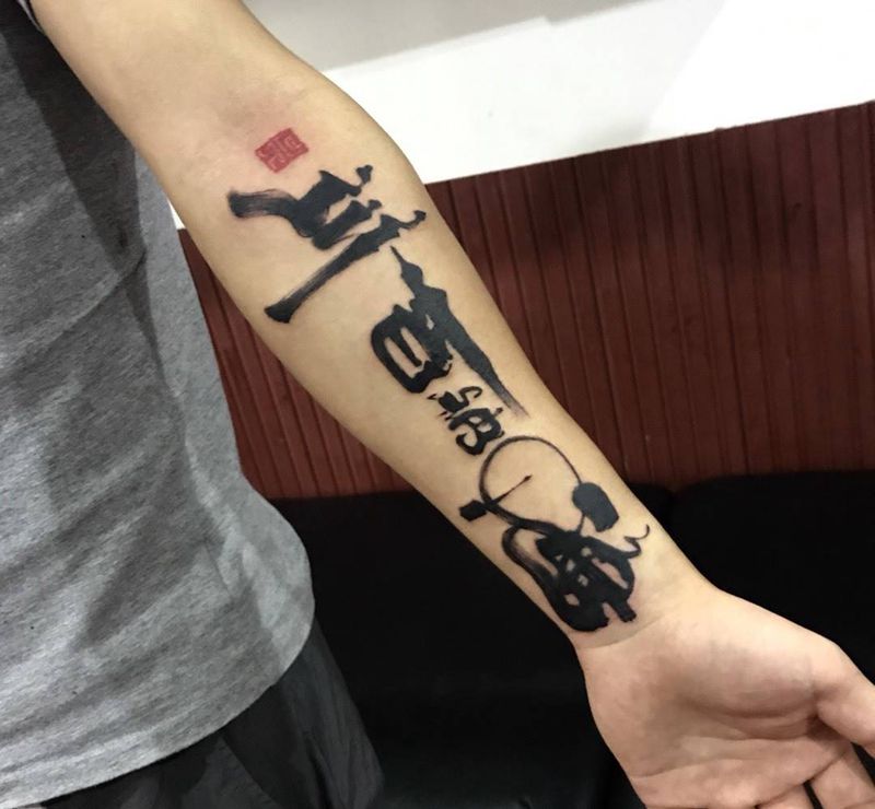 海纳百川纹身图片_成品手臂手部传统国画字符呀呀刺青图腾纹身图案