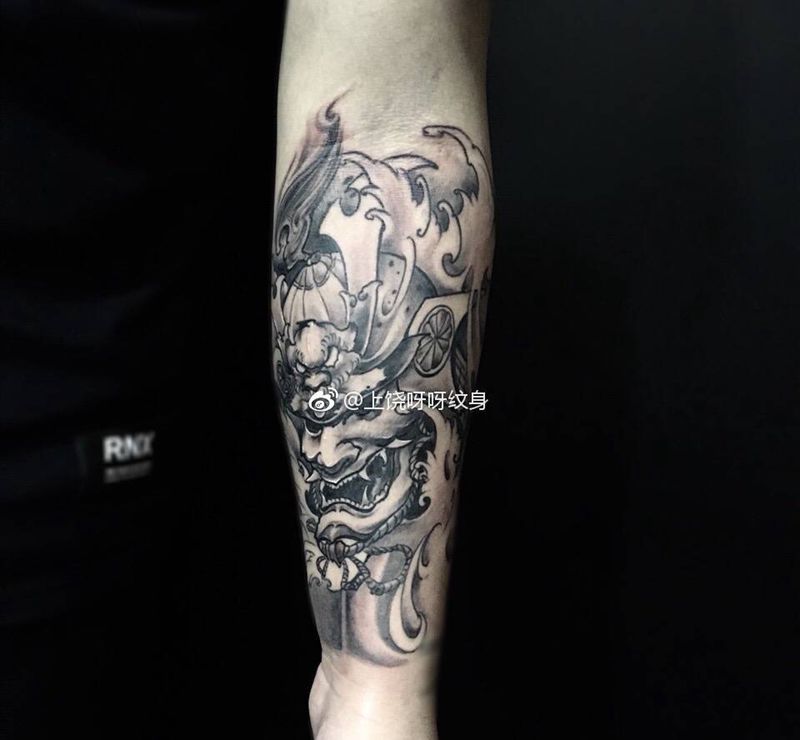鬼武士纹身图片_成品手部手臂传统鬼神呀呀刺青纹身图案