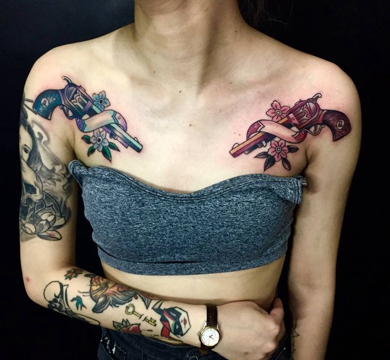 当前位置: 首页 >江西省上饶市纹身店-呀呀刺青纹身图案>双枪秀纹身图片