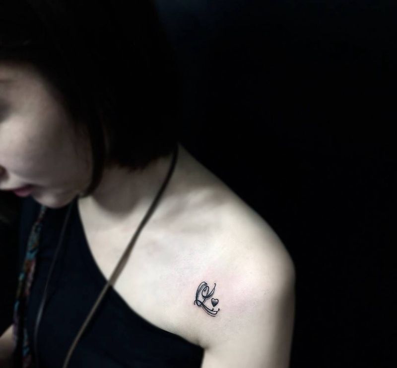 Q字母纹身图片_成品颈部肩部纹身图案