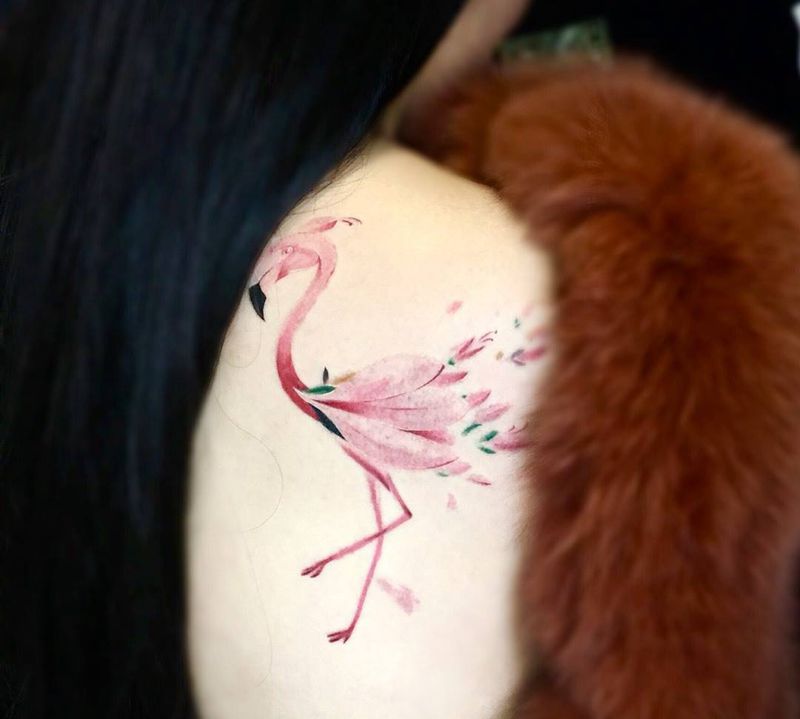 当前位置: 首页 >江西省上饶市纹身店-呀呀刺青纹身图案>火烈鸟纹身图片_成品手部手臂清新动物纹身图案