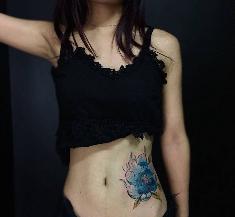 • 时尚性感的腹部莲花纹身图案