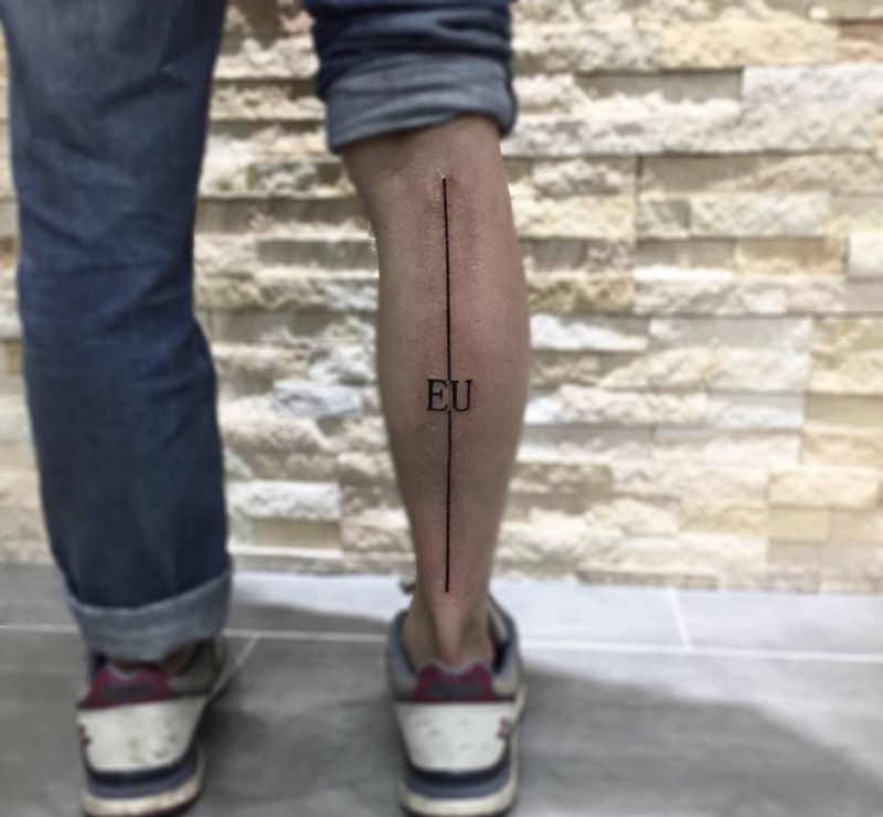 腿部直线字母纹身图片_成品脚部腿部清新传统欧美字符纹身图案
