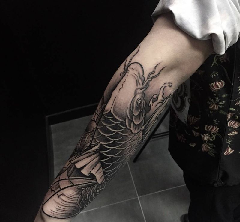 小臂鲤鱼纹身图片_成品手部手臂传统动物纹身图案