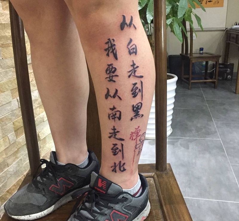 字纹身图片_成品脚部腿部国画字符纹身图案
