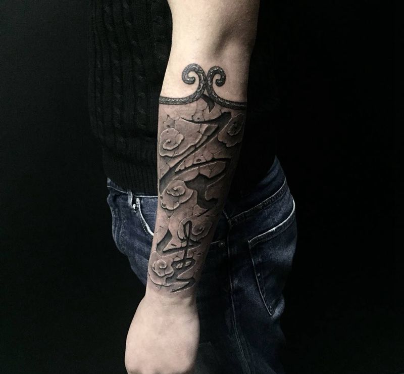 当前位置: 首页 >江西省上饶市纹身店-呀呀刺青纹身图案>石裂书法纹身图片_成品手臂传统原创字符纹身图案