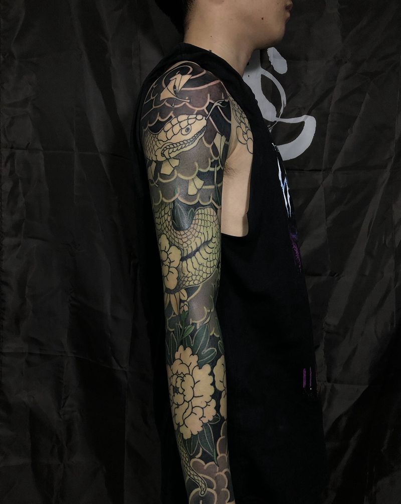 老传统花臂纹身图片_手臂手部老传统新传统纹身图案