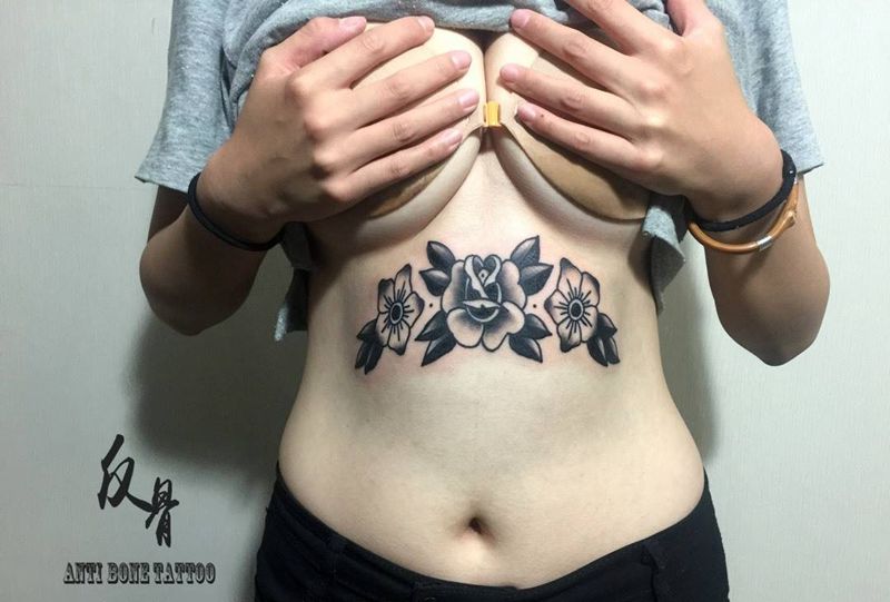 • 女性大花胸纹身_43张霸气漂亮的女性大花胸纹身图案作品