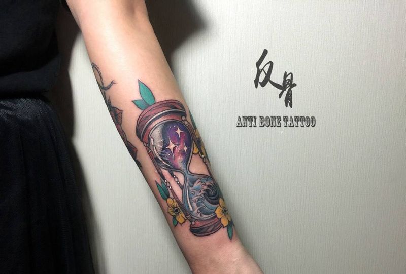当前位置: 首页 >山东省济南市纹身店-反骨刺青纹身工作室纹身图案>沙漏遮盖疤痕作品纹身图片_成品手臂腿部欧美清新几何静物原创彩图纹身图案