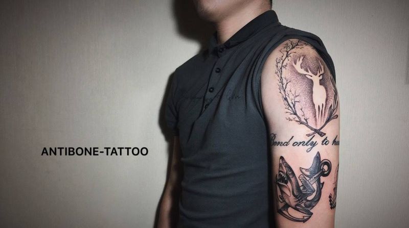 当前位置: 首页 >山东省济南市纹身店-反骨刺青纹身工作室纹身图案># 纹身 是种会上瘾的痛 #纹身图片_成品手臂欧美清新几何字符黑白点刺反骨刺青纹身图案
