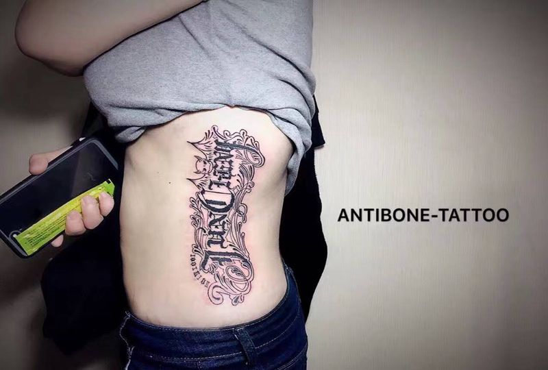 当前位置: 首页 >山东省济南市纹身店-反骨刺青纹身工作室纹身图案>花体,顾客自己设计纹身图片_成品腰部欧美字符花体字反骨刺青纹身图案