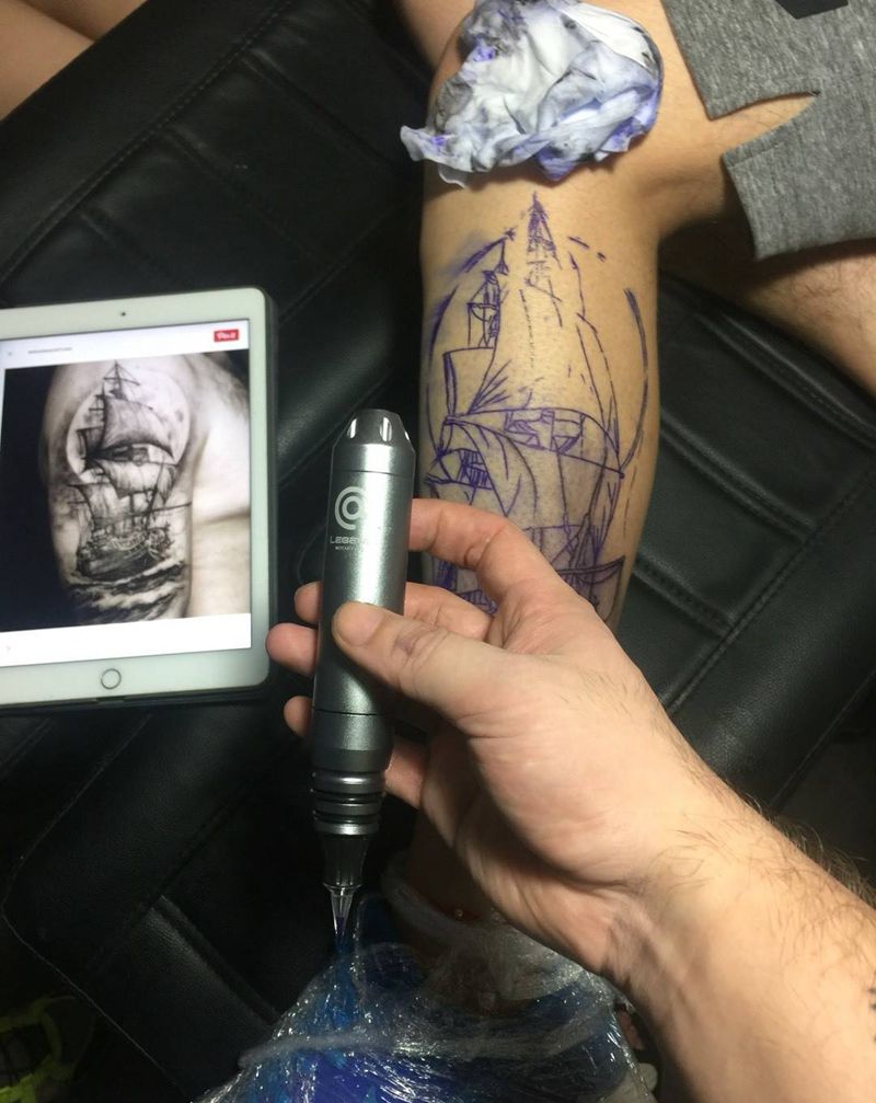 当前位置: 首页 >山东省济南市纹身店-反骨刺青纹身工作室纹身图案>帆船作品(感谢纹身大咖传奇那支)纹身图片_成品手臂腿部欧美写实静物黑白纹身图案