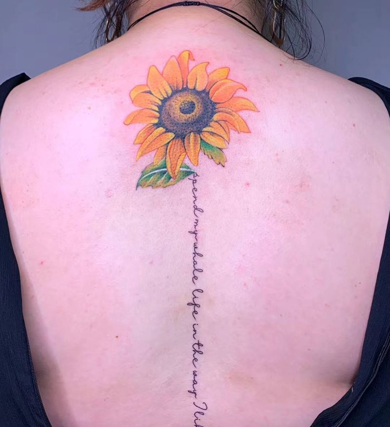 #水彩向日葵#纹身图片_背部水彩水墨向日葵纹身图案