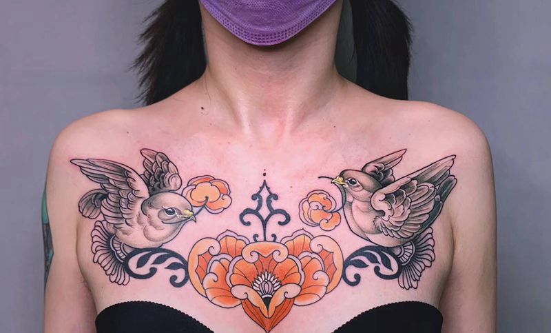 • 女性大花胸纹身_43张霸气漂亮的女性大花胸纹身图案作品