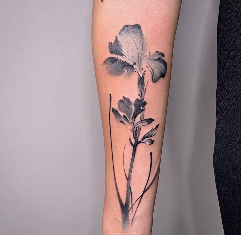 水墨鸢尾花纹身图片_手臂腿部水墨老传统水墨风中国风水墨花纹身图案