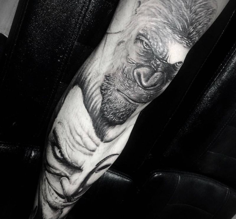 金刚纹身图片_成品插画腿部脚部肖像欧美写实人物动物原创纹身图案