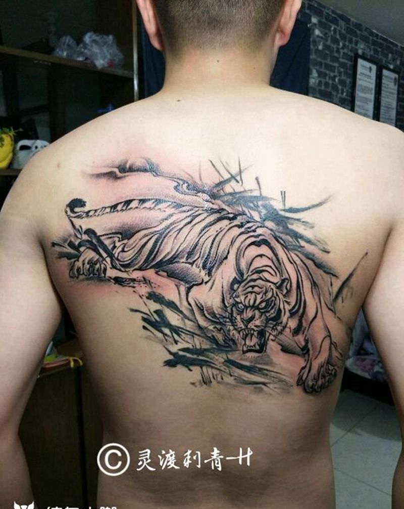 当前位置: 首页 >山东省济南市纹身店-灵渡刺青纹身图案>水墨虎纹身图片_传统国画动物成品纹身图案