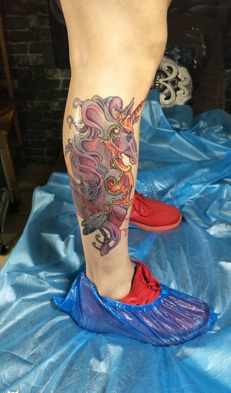 当前位置: 首页 >山东省济南市纹身店-济南老男孩刺青纹身图案>小腿独角兽纹身图片