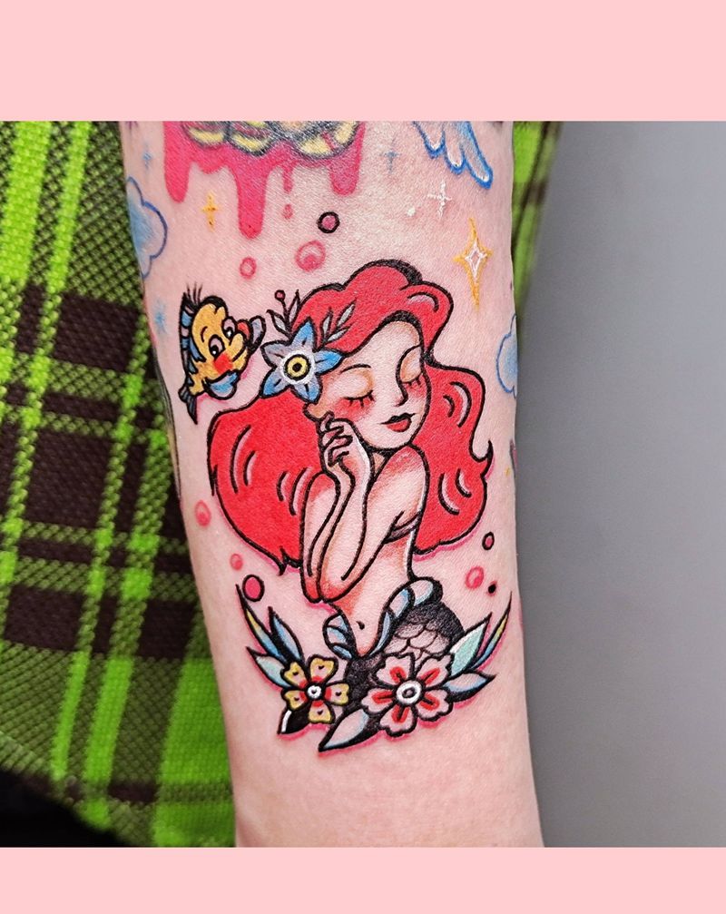 当前位置: 首页 >山东省济南市纹身店-反骨刺青纹身工作室纹身图案>小美人鱼纹身图片_手臂Old School爱丽儿小美人鱼纹身图案