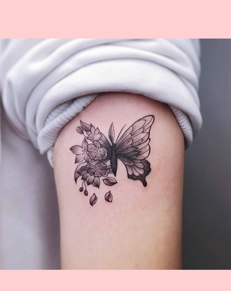 蝴蝶纹身图片_手臂小清新蝴蝶花纹身图案