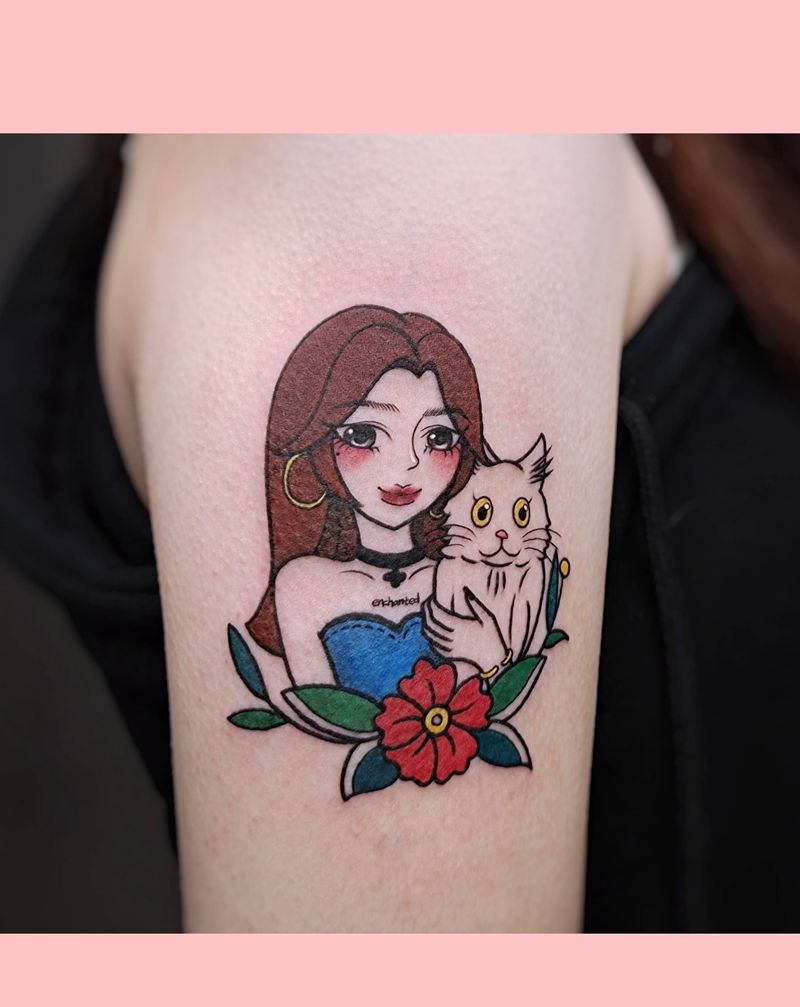 当前位置: 首页 >山东省济南市纹身店-反骨刺青纹身工作室纹身图案>女孩和猫纹身图片_手臂Old School猫原创纹身图案