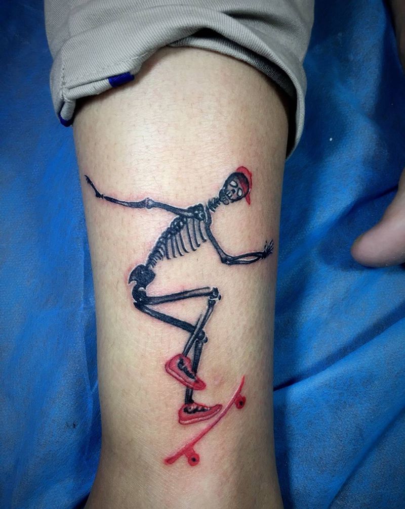• T网红王老大花腿龙纹身图片_腿部新传统纹身图案