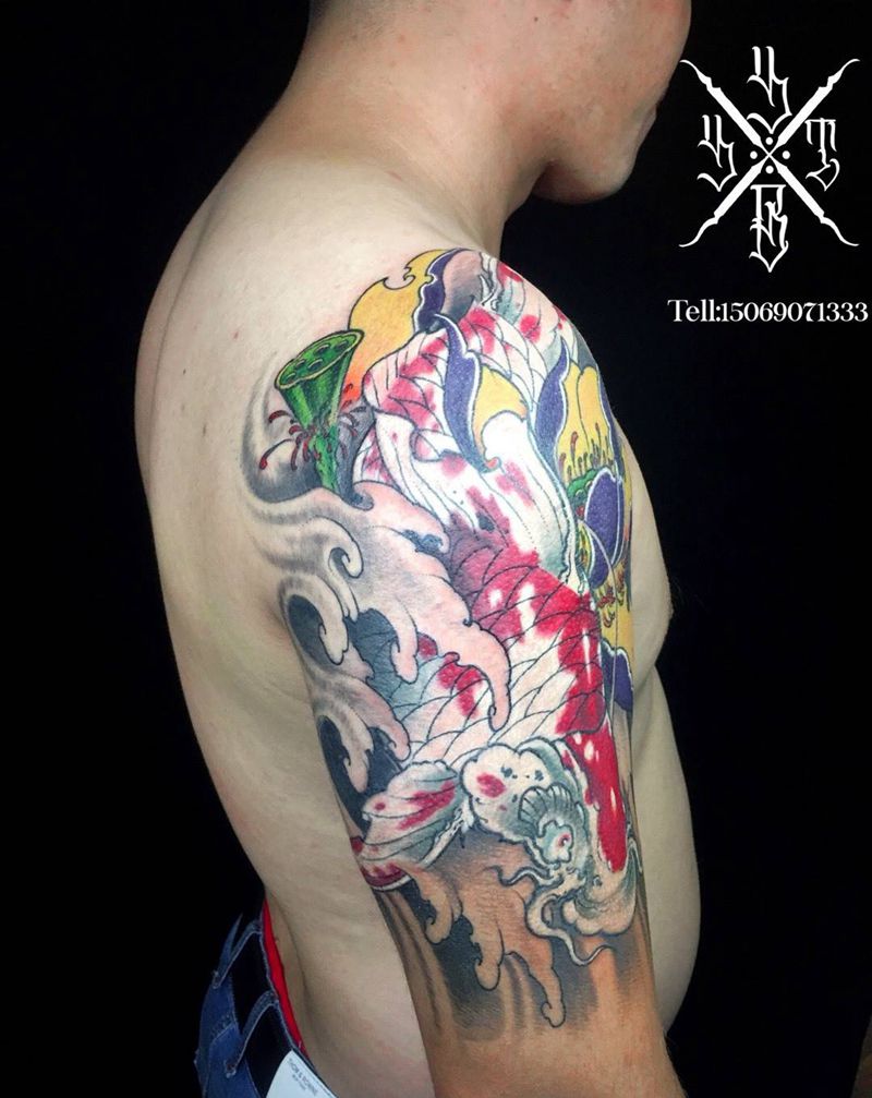 当前位置: 首页 >山东省济南市纹身店-云天宗刺青纹身图案>锦鲤牡丹纹身图片