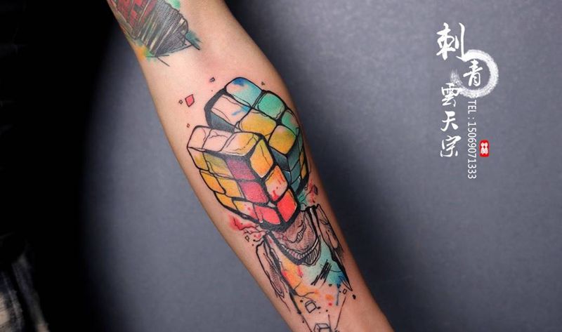 当前位置: 首页 >山东省济南市纹身店-云天宗刺青纹身图案>水彩魔方纹身图片_成品手臂欧美原创人物纹身图案