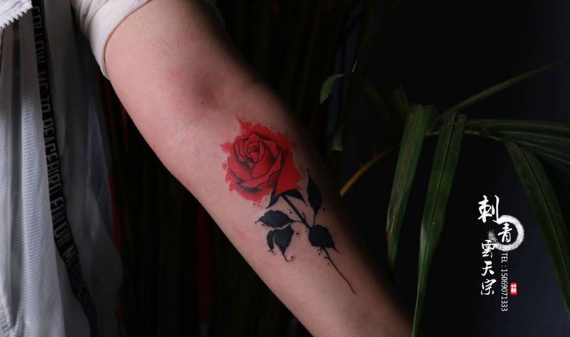 当前位置: 首页 >山东省济南市纹身店-云天宗刺青纹身图案>玫瑰纹身图片_成品手臂国画写实清新植物纹身图案