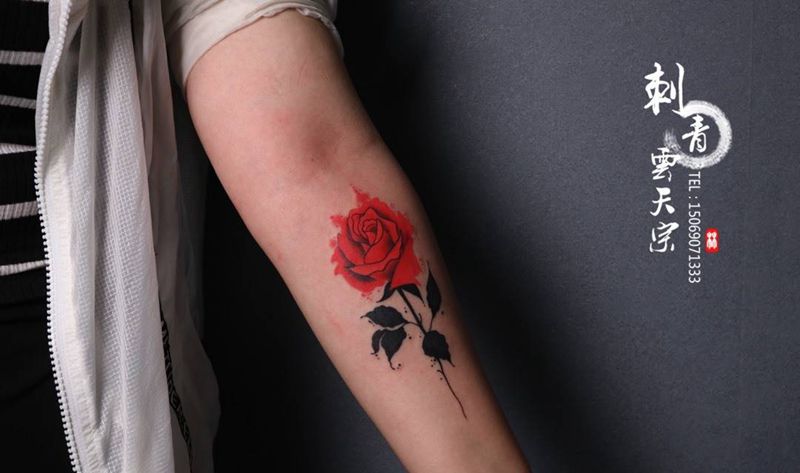 当前位置: 首页 >山东省济南市纹身店-云天宗刺青纹身图案>玫瑰纹身图片_成品手臂国画写实清新植物纹身图案
