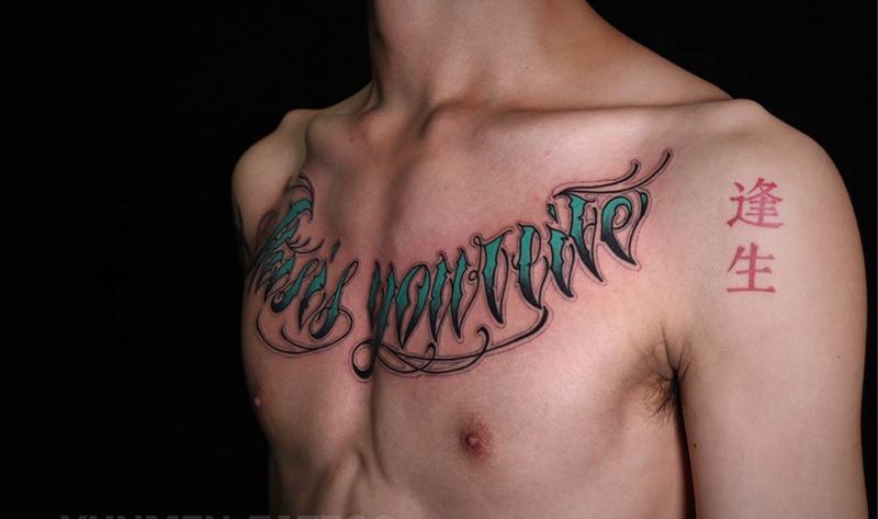 当前位置: 首页 >山东省济南市纹身店-云天宗刺青纹身图案>花胸纹身图片_成品胸部字符原创纹身图案