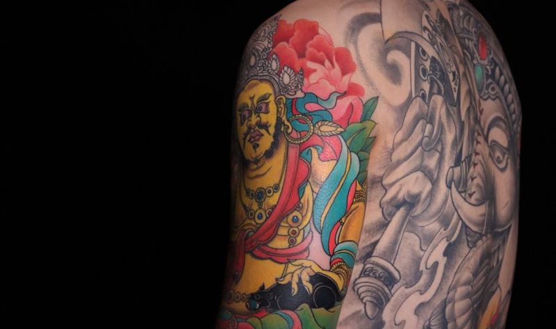 当前位置: 首页 >山东省济南市纹身店-云天宗刺青纹身图案>花臂一角纹身图片