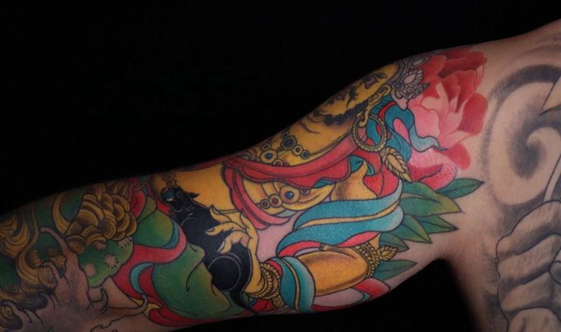 当前位置: 首页 >山东省济南市纹身店-云天宗刺青纹身图案>花臂一角纹身图片