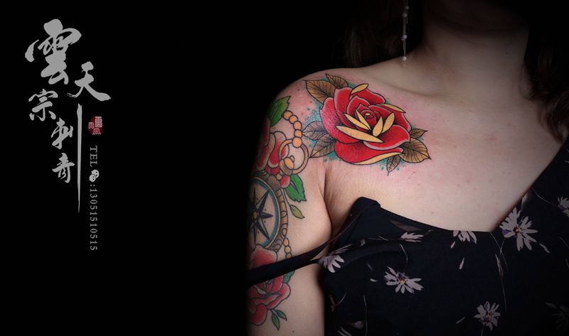 当前位置: 首页 >山东省济南市纹身店-云天宗刺青纹身图案>花纹身图片_胸部肩部New School纹身图案