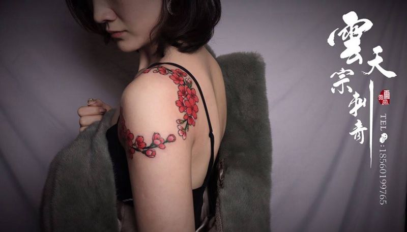 当前位置: 首页 >山东省济南市纹身店-云天宗刺青纹身图案>花环纹身图片_成品肩部国画清新静物植物纹身图案
