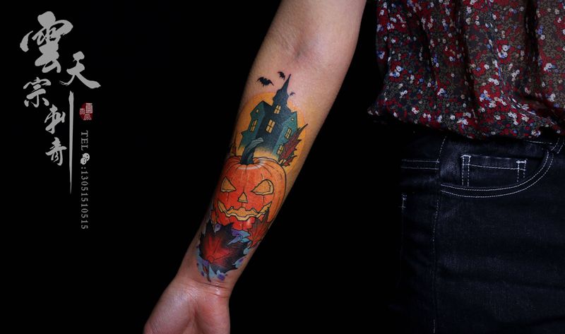 当前位置: 首页 >山东省济南市纹身店-云天宗刺青纹身图案>南瓜纹身图片_手臂New School纹身图案