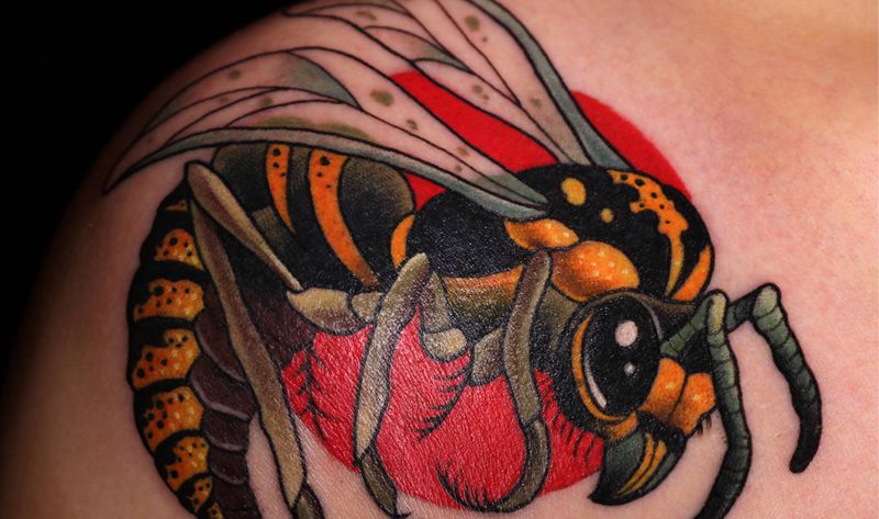 当前位置: 首页 >山东省济南市纹身店-云天宗刺青纹身图案>大黄蜂纹身图片_颈部胸部New School纹身图案