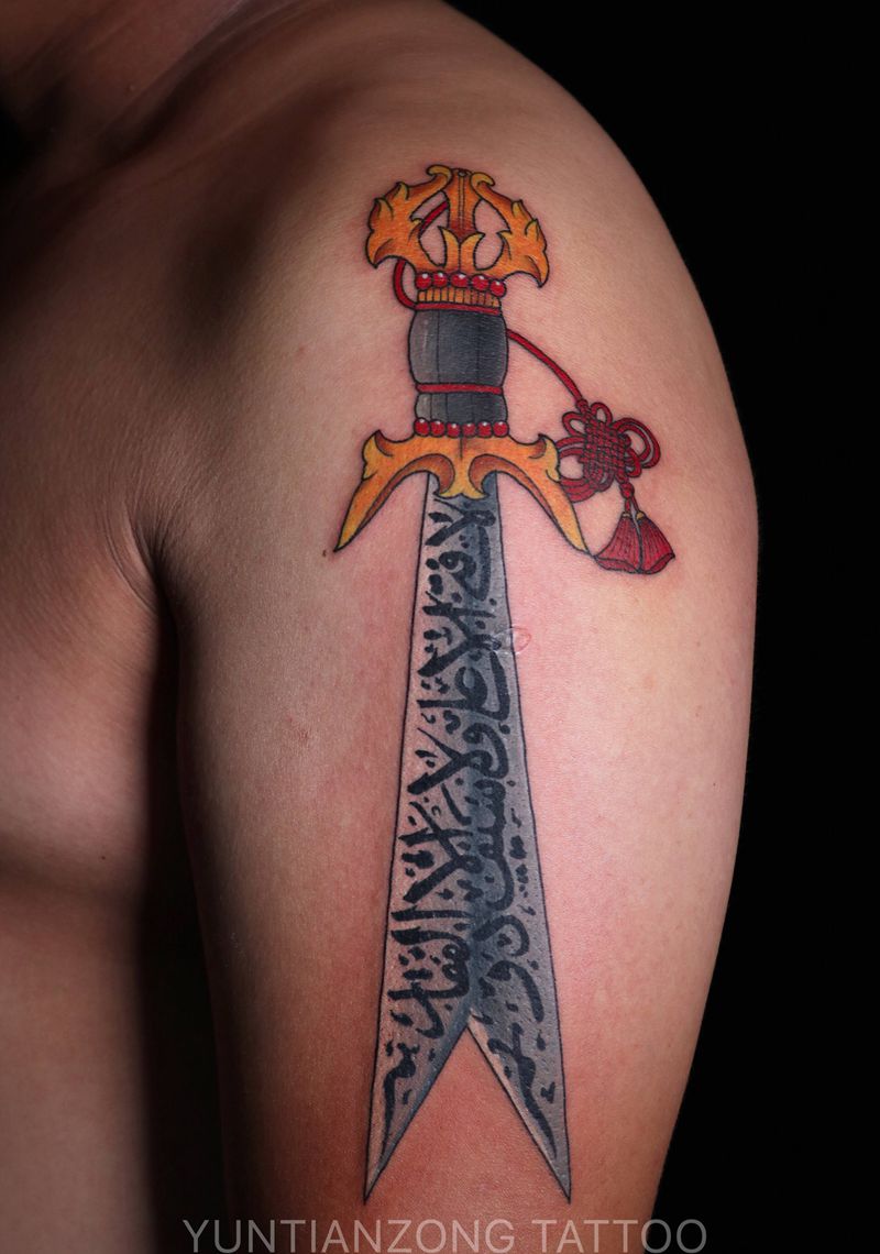 阿里仙剑纹身图片_肩部新传统纹身图案