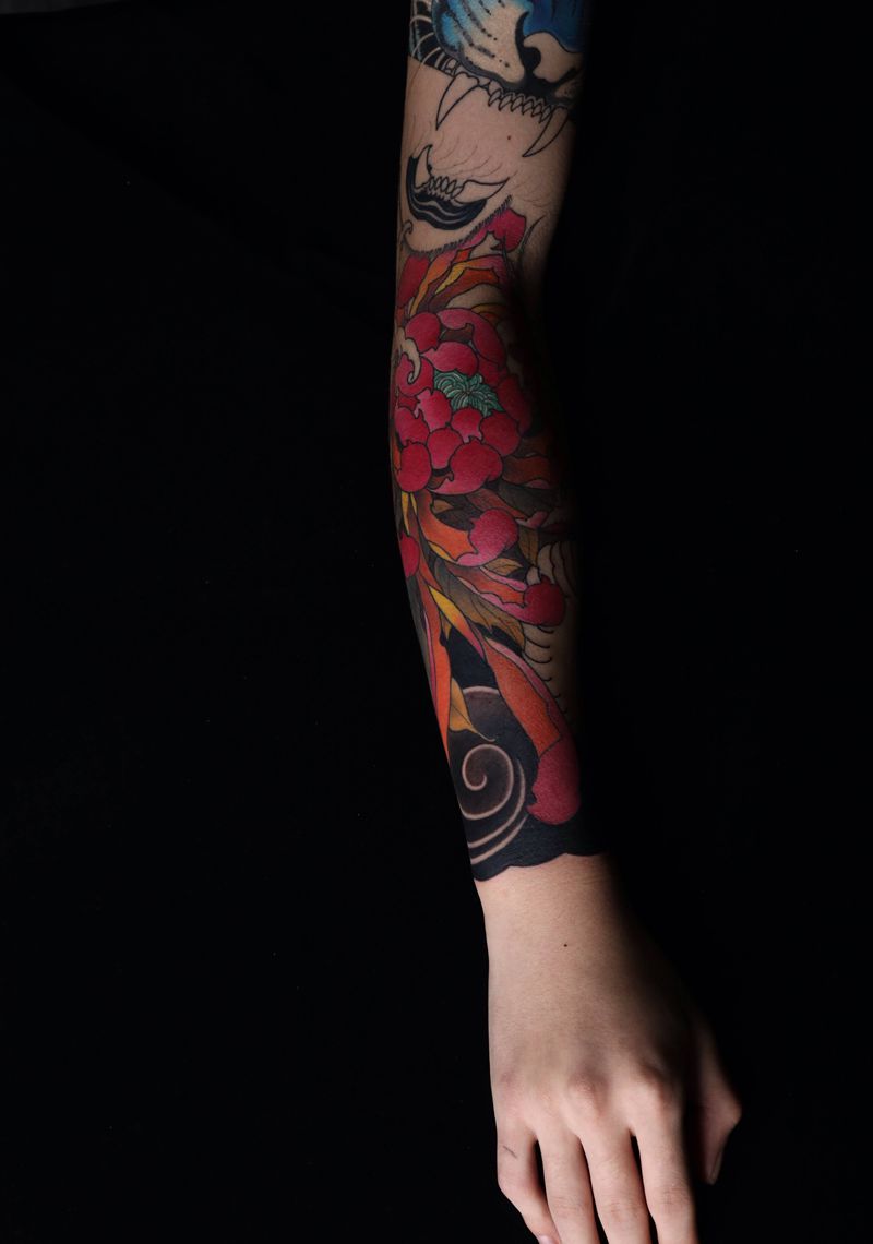 当前位置: 首页 >山东省济南市纹身店-云天宗刺青纹身图案>菊花纹身图片_手部手臂新传统纹身图案